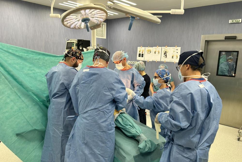Операцията извършиха д-р Йордан Вълешков, д-р Константин Тотев и д-р Стелиян Лунгаров, под ръководството на проф. Борис Стено от Словакия, специалист с дългогодишен опит в ревизионната артропластика на тазобедрена става и в поставянето на индивидуални импланти.