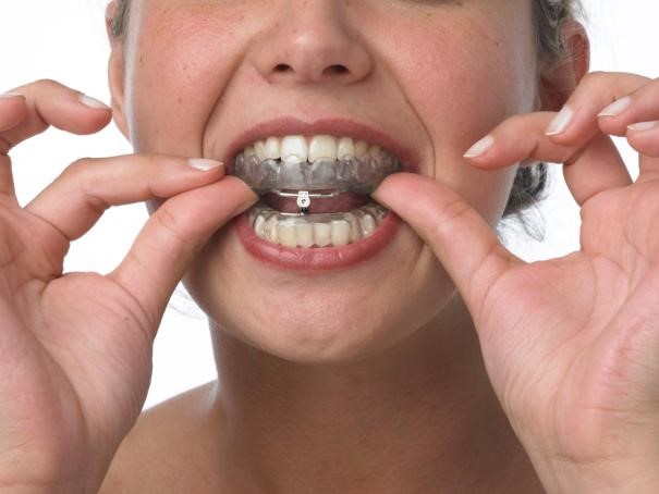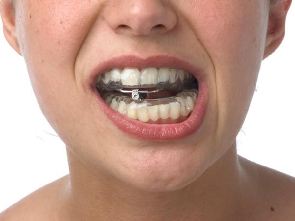 Ние прилагаме апаратът OrthoApnea®. Tой се състои от две назъбни шини, изработени от комбинирана мека с твърда пластмаса. Двете шини са свързани с титанов винт.(фиг. 1). Устройството на винта позволява странични движения на долната челюст. (фиг.3). Пациентът може да говори с апарата (да размени няколко думи с партньора преди сън) и да поема течности. Винтът се активира веднъж седмично със специално устройство. (фиг. 2). Долната челюст постепенно се премества напред, докато пациентът спре да хърка нощно време.